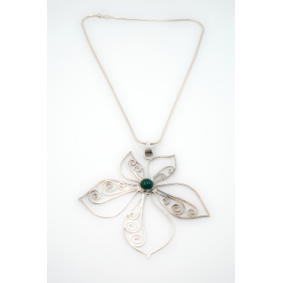 De hanger scharniert onderaan, en de ketting is met de hand gemaakt.